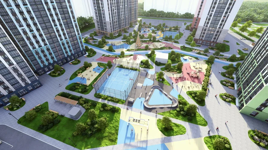 Одно из главных преимуществ ЖК - отсутствие машин во внутреннем дворе. Даже самые маленькие жители смогут безопасно играть и проводить время на улице.